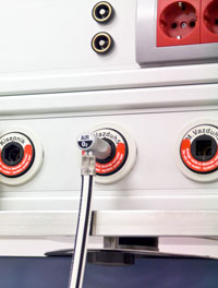 Svi priključci jake i slabe struje priključuju se na centralni priključak koji se nalazi na jednom od krajeva bolesničkog seta.