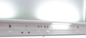 Pored osvetljavanja bolesničke sobe, bolesnički set UBS 2100 obezbeđuje potrebne priključke jake i slabe struje za bolesničke krevete.