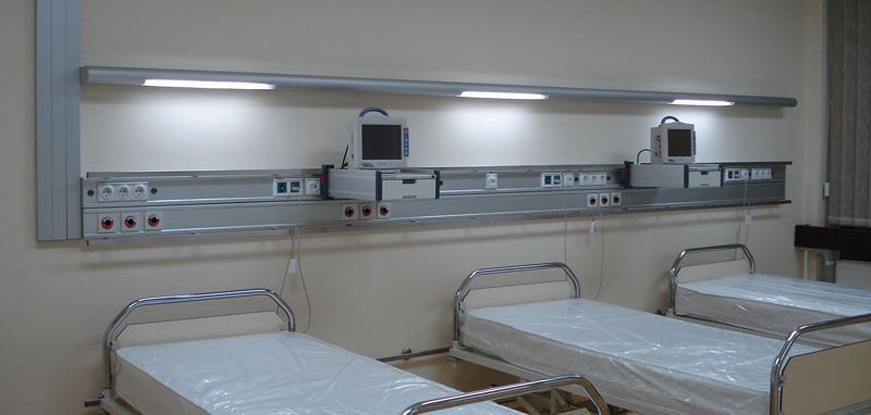 Donji kanal u bolesničkom setu namenjen je za postavljanje instalacije i montažu priključaka za medicinske gasove. Broj i raspored priključaka definiše kupac.